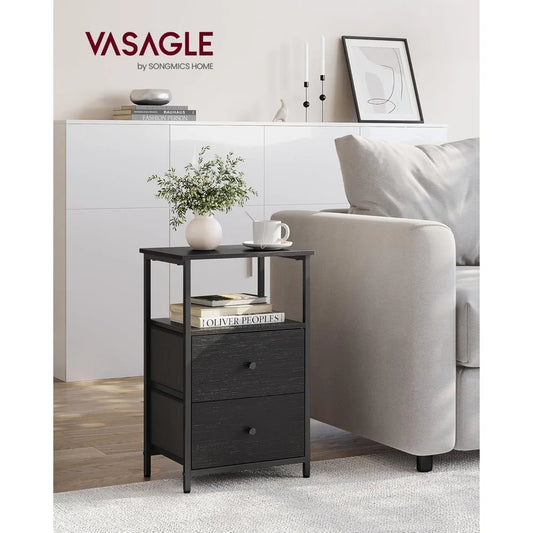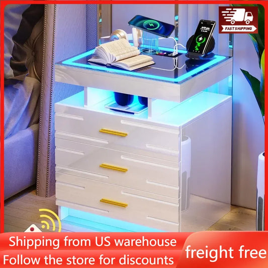 Set of 2 LED Nightstand with 2 Drawers, Bedside Nightstand