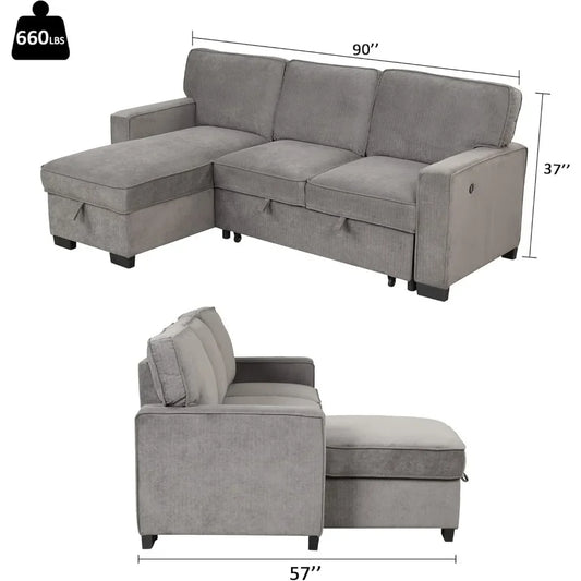3-in-1 Convertible Futon Sofas Bed with Adjustable Backrest and Storage