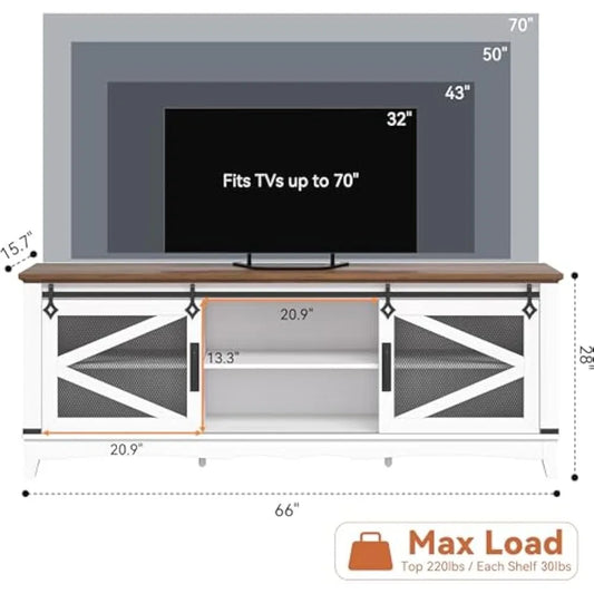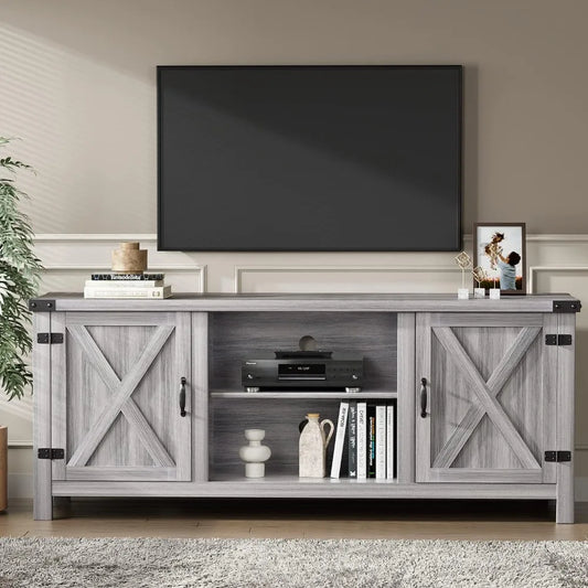 Modern TV Stand with Two Barn Doors and Storage Cabinets